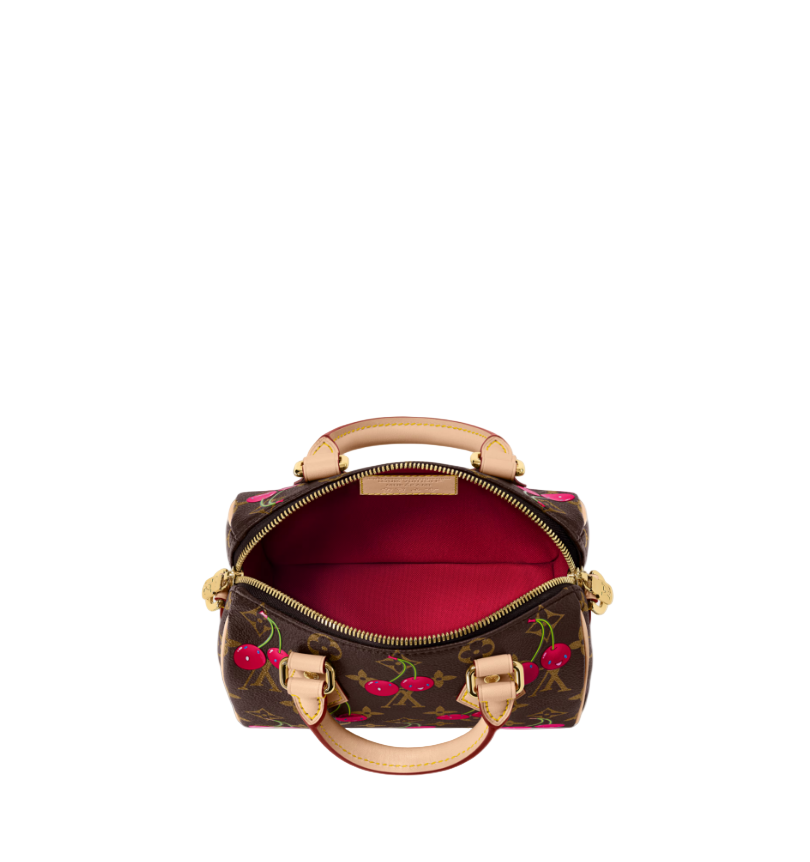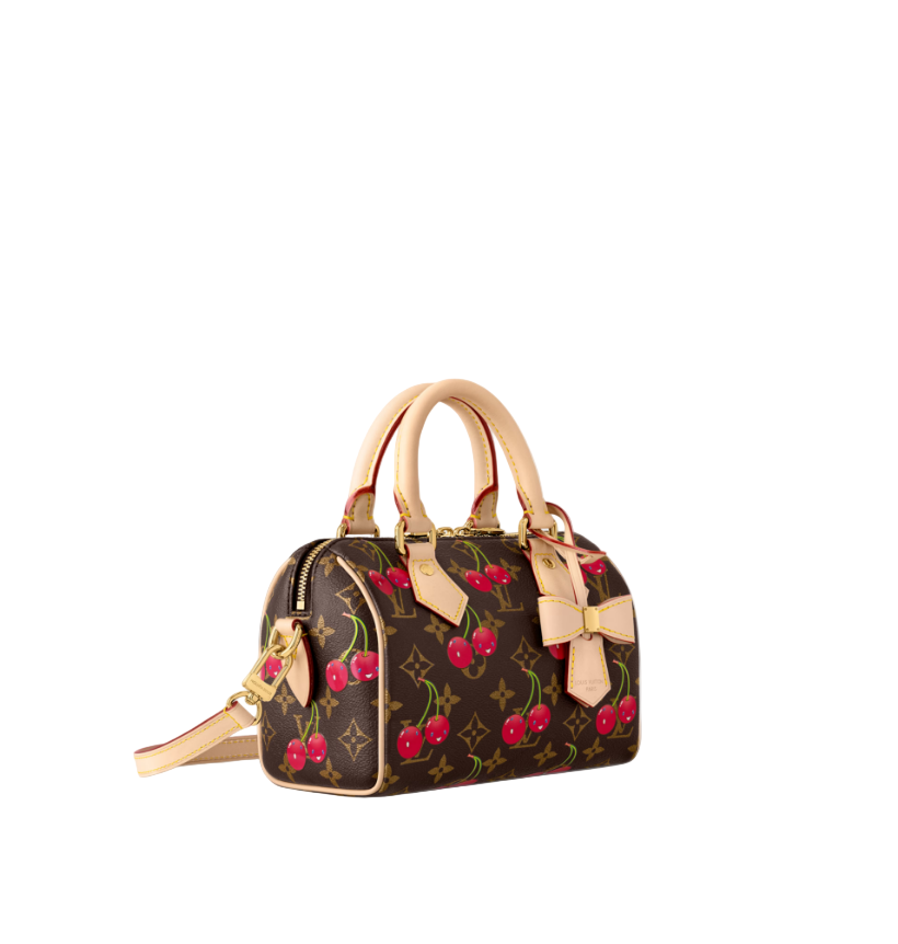 Now reimagined and even rarer, the Cerises line features playful red cherries on classic silhouettes like the Speedy 25, Keepall, and Pochette Accessoires — making every piece feel like wearable pop art.